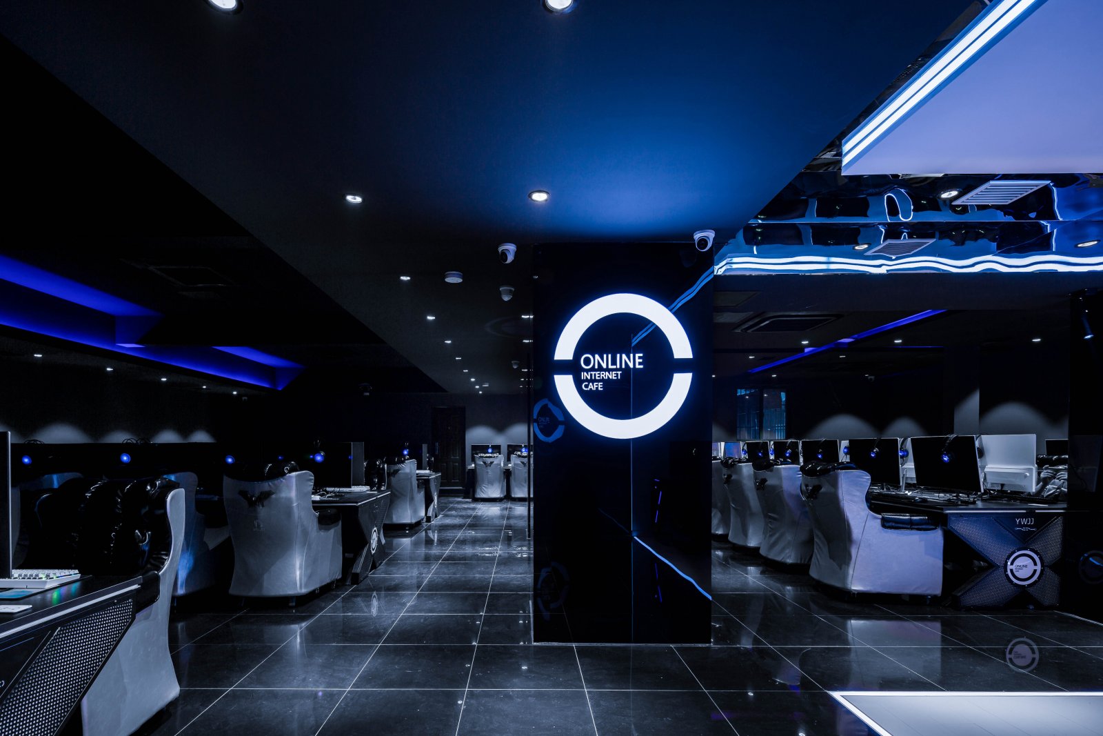 網(wǎng)(wǎng)吧裝修案例:電競(jìng)燈光網(wǎng)(wǎng)咖,設(shè)(shè)計(jì)(jì)裝修效果圖整體設(shè)(shè)計(jì)(jì)風(fēng)(fēng)格以酷炫的燈光為基礎(chǔ)(chǔ),在此空間中,明與暗,線(xiàn)與面,光與影,延伸與抵抗,全部以二元對(duì)立的方式吸收空間的敘事性,讓身體里的每一個(gè)細(xì)(xì)胞在其中激蕩。