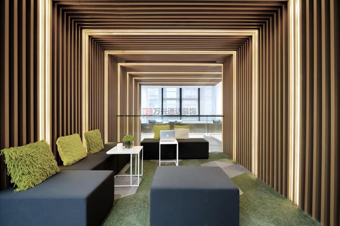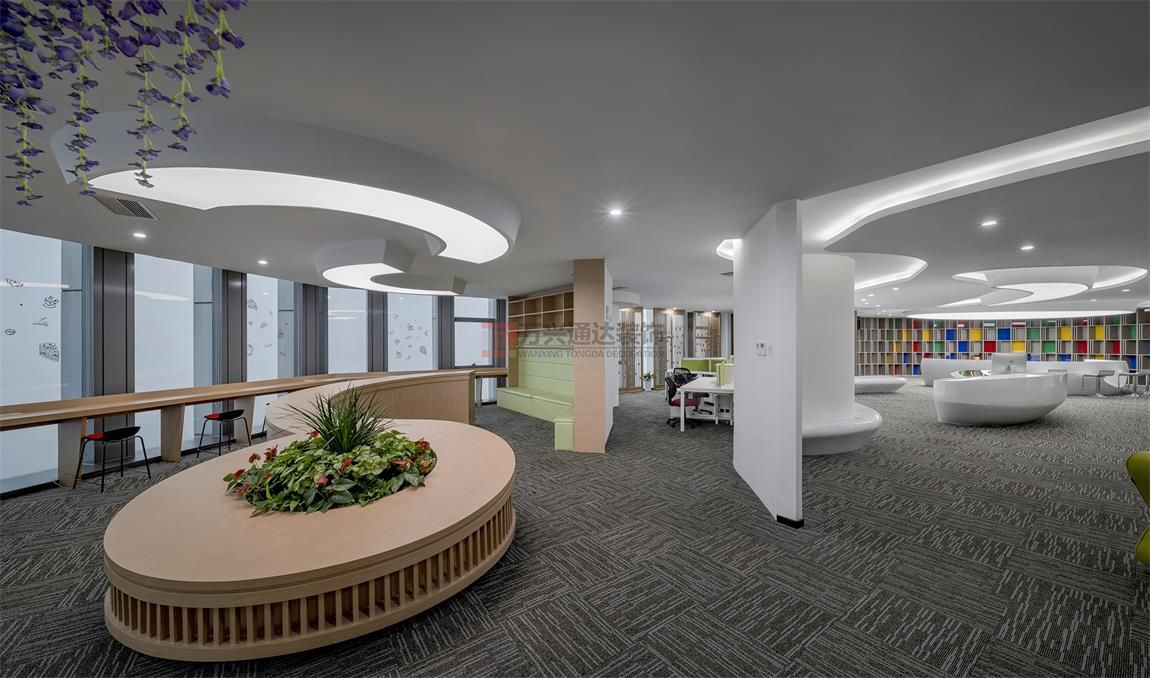 辦公室裝修案例:巧妙的將辦公裝修與趣味融合到一起,設(shè)(shè)計(jì)(jì)最大的初衷是:“ 讓人在辦公環(huán)(huán)境里面很愜意地體會(huì)自然 ”。以此來(lái)創(chuàng)(chuàng)造一個(gè)生態(tài)(tài)型的,能跟自然有一定互動(dòng)的園區(qū)(qū),由生態(tài)(tài)性來(lái)創(chuàng)(chuàng)造部分的微氣候。這是一個(gè)彰顯活力的地方,是一個(gè)充滿(mǎn)樂(lè)趣辦室公設(shè)(shè)計(jì)(jì)裝修風(fēng)(fēng)格。